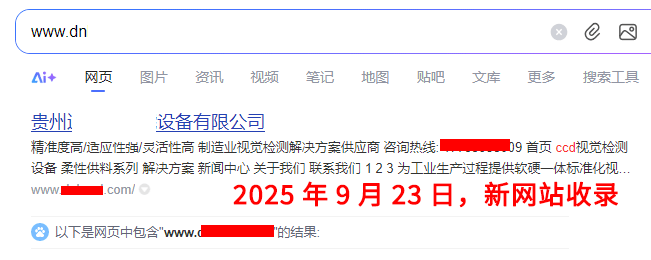 2025年9月23日,新網站百度收錄成功。